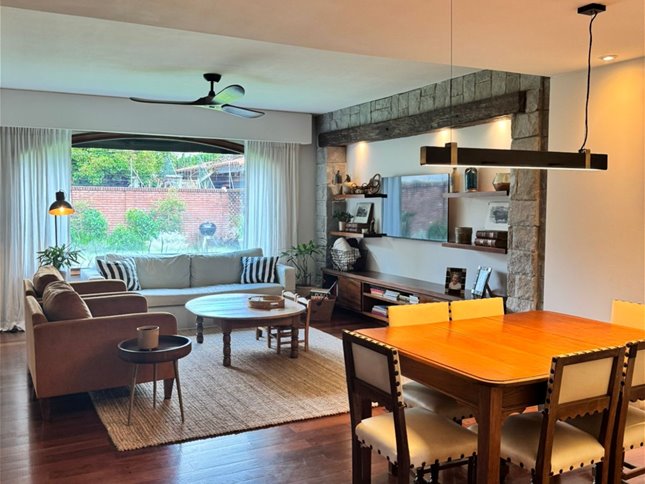 Planta baja: hall de entrada, living comedor con estufa a leña vinculado al fondo con salida a una linda terraza cerrada.