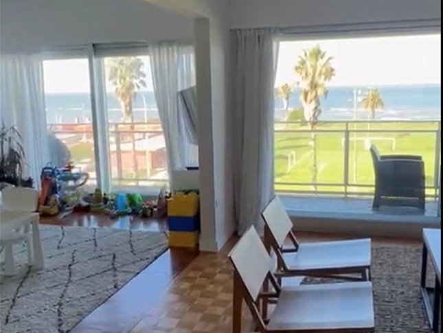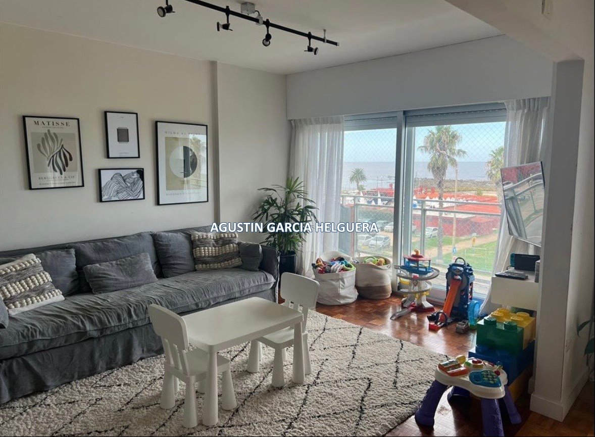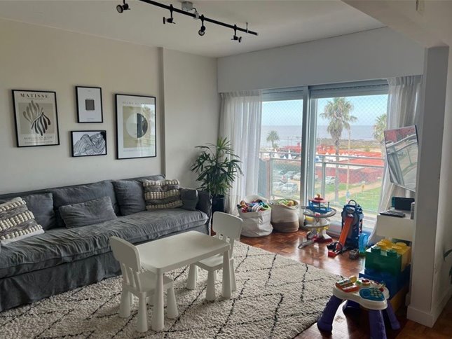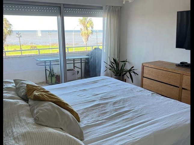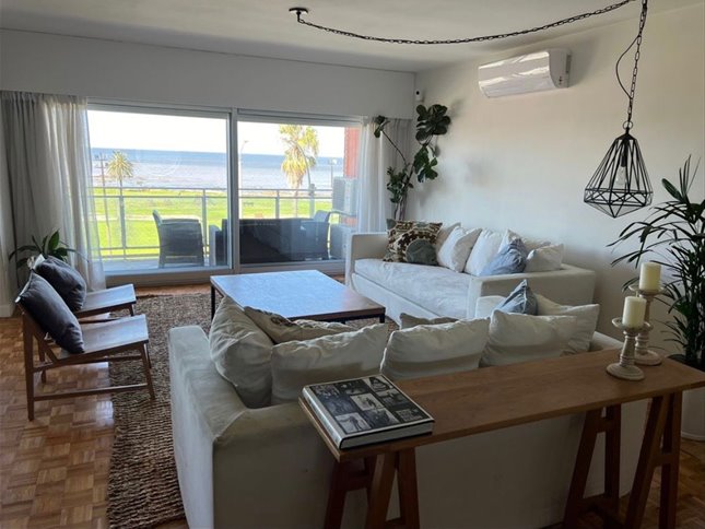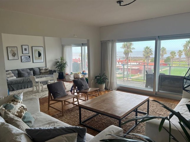 Amplio Living Comedor con vista al mar y rambla y salida a la terraza .