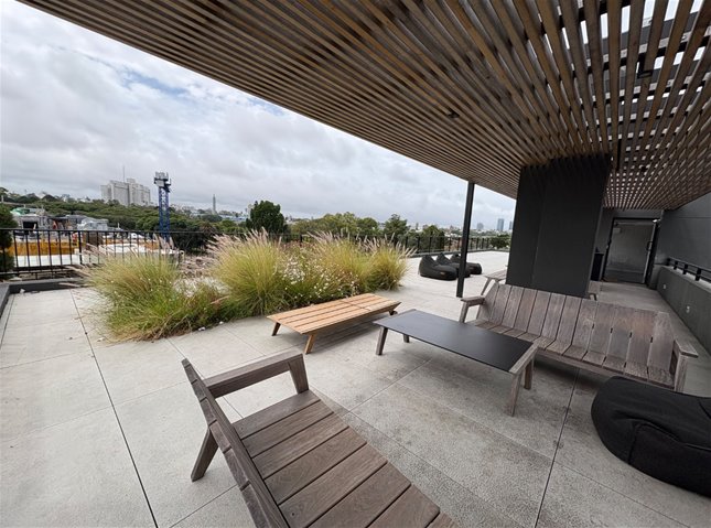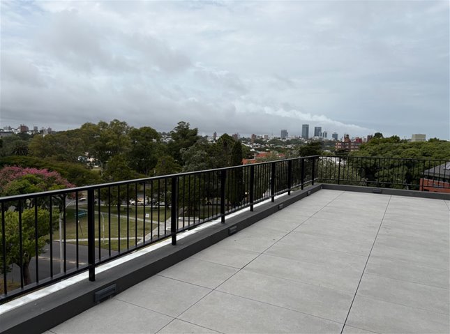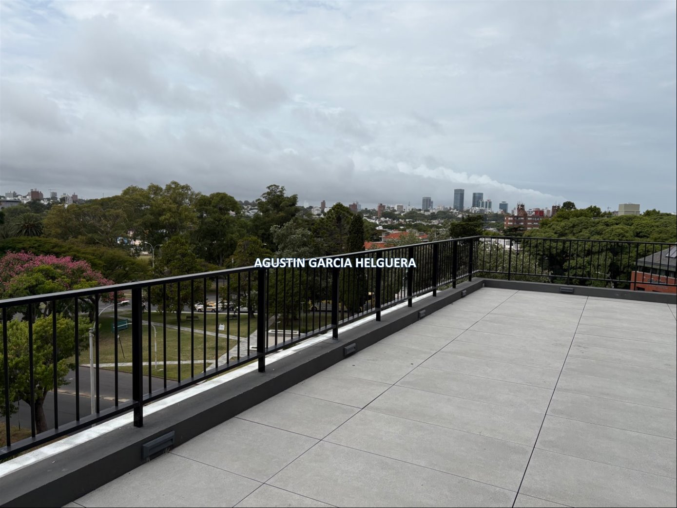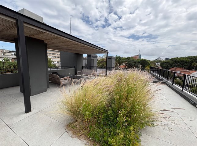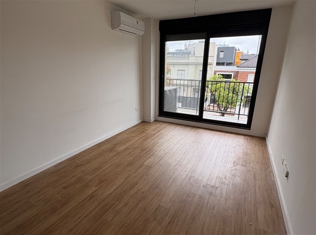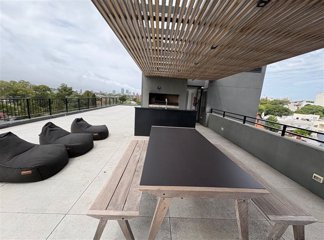 El apartamento se desarrolla todo al frente y se destaca por su gran terraza que recorre toda la unidad, brindando excelente luminosidad y un espacio ideal para disfrutar al aire libre.