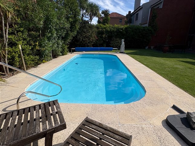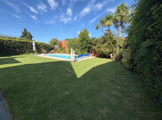 Se destaca por su amplio terreno con 18 metros de frente, jardín con gran retiro y un fondo enjardinado muy disfrutable, con piscina climatizada y excelente orientación solar.